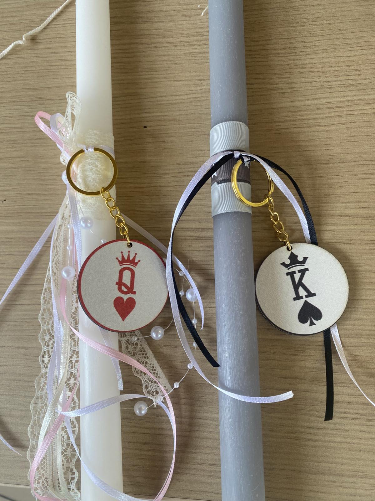 Σετ λαμπάδες με ξύλινα μπρελόκ (η τιμή συμπεριλαμβάνει και τις δυο λαμπάδες)